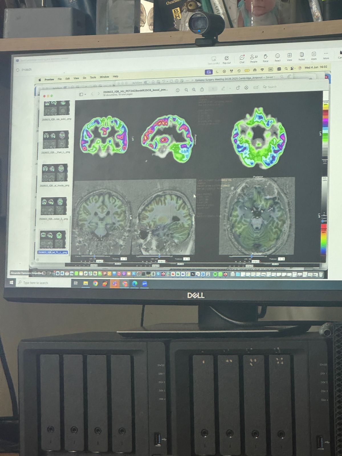 Durante mi estancia, me adentré en el mundo fascinante de la neurofisiología clínica, lo que abrió mis horizontes a nuevas decisiones de carrera. Aprendí a realizar lecturas de electroencefalogramas (EEG), entendiendo no solo su interpretación técnica, sino también su relevancia en la toma de decisiones clínicas. Me entrené en análisis de datos clínicos, aplicando herramientas que combinan estadística y tecnología para extraer patrones significativos. Cada momento trabajando con el equipo del Doctor Valentín era un recordatorio de que la investigación no es un ejercicio abstracto: es una herramienta poderosa para devolver calidad de vida a quienes viven con epilepsia y otros trastornos neurológicos, además de recordarme lo afortunada que era de pertenecer a un capitulo tan competente y preparado como para estar viviendo una oportunidad como esa.