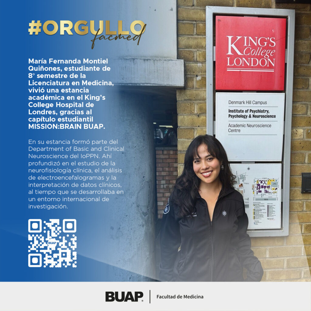 “Este verano gracias al apoyo y tutorado de la mesa directiva del capítulo de BUAP Mission Brain, tuve el privilegio de vivir una experiencia que marcó un antes y un después en mi formación como futura médica e investigadora. Como actual jefa del área de investigación del capítulo estudiantil MISSION:BRAIN en la Benemérita Universidad Autónoma de Puebla (BUAP), tuve la oportunidad de representar a nuestra comunidad en un escenario internacional gracias a un convenio especial entre nuestro capítulo y el King’s College Hospital en Londres.