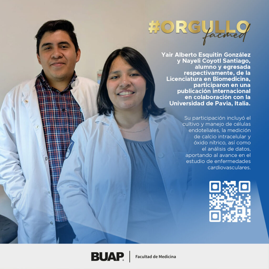 La Facultad de Medicina de la BUAP felicita a Yair Alberto Esquitin González y Nayeli Coyotl Santiago, así como al equipo del laboratorio dirigido por el D. C. Roberto Berra Romani. El mensaje es claro: cuando el estudiantado es el centro y se le brindan herramientas, mentoría y oportunidades de colaboración internacional, la ciencia que se hace en la BUAP trasciende fronteras y crea nuevas rutas para las próximas generaciones de investigadores.