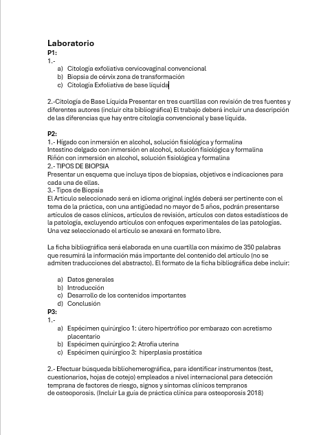 Hola en las siguientes actividades de practicas de laboratorio de 1,2,3 contestaras descripciones macroscópicas y microscópicas así como una imagen histopatológica